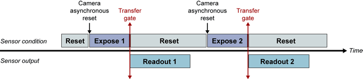 The figure shows two successive camera cycles. Quite often, it is not possible to overlap the exposure condition of a given cycle with the readout condition of the previous cycle.