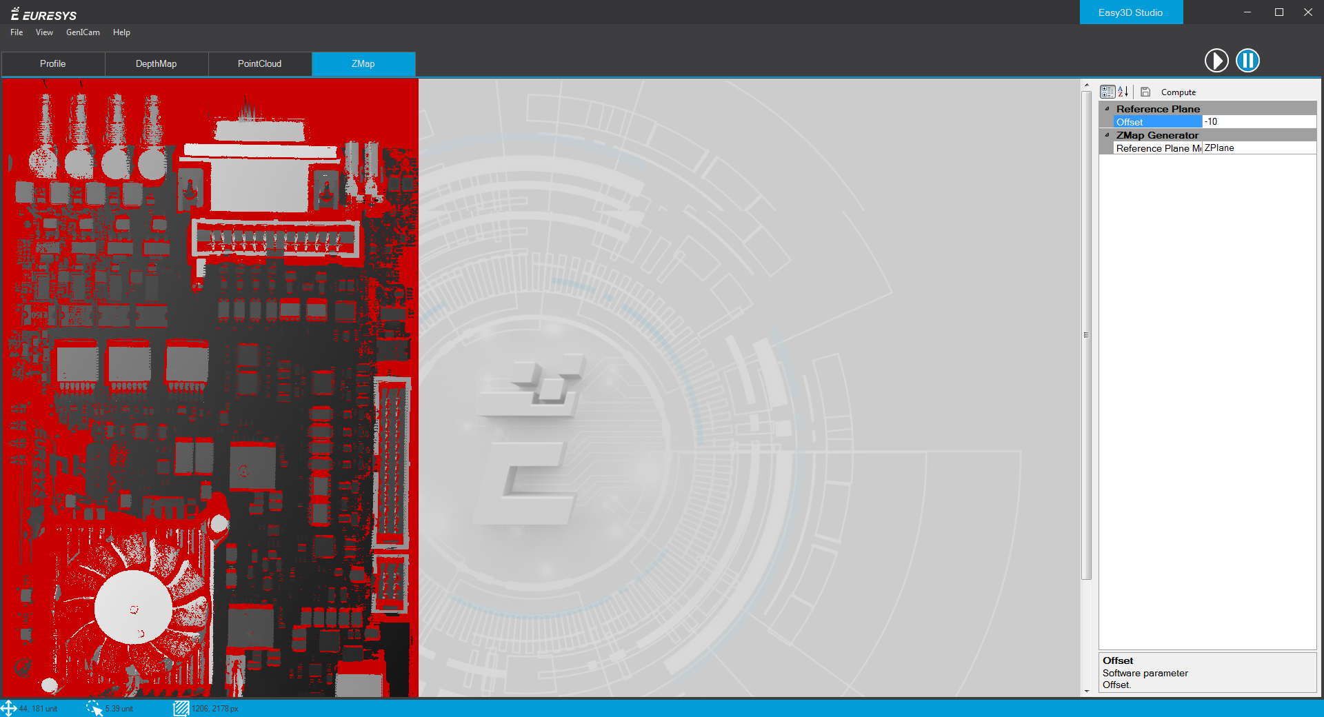 The corresponding ZMap is generated and displayed.