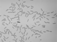 Click Remove. All the objects with an area smaller than 100 pixels have been removed from the list. The two remaining objects are the bad rice grains. |