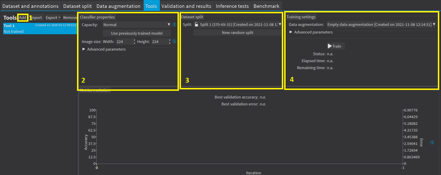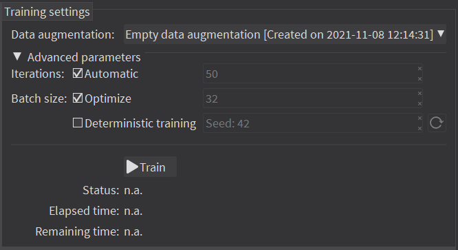 Configure the training settings and click on Train. |