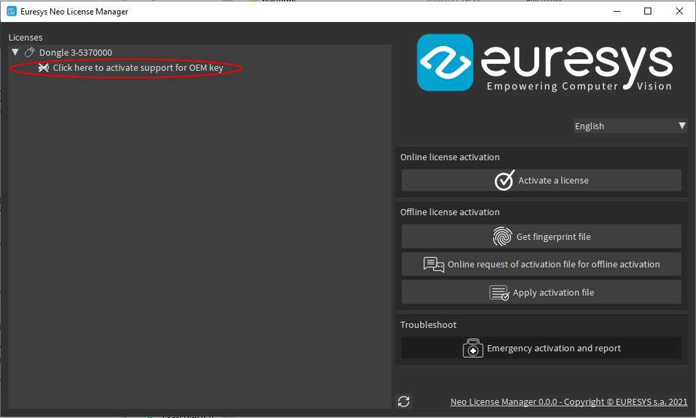 The offline Neo License activation. |