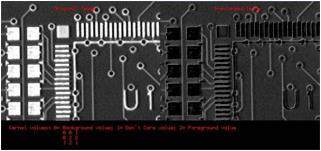 ヒットアンドミス変換はBW8、BW16、C24画像またはROIに使用することができ、画像から前景/背景ピクセルの特定のパターンを検出します。