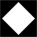 結果画像:強調されたピクセルは菱形の左コーナーに位置している