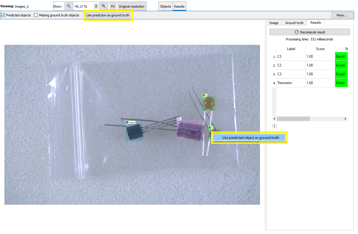 | ● | 要接受所有预测对象作为真实值,请执行以下操作: |