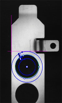 4. Using the handles, drag the circle fitting gauge around the upper bracket hole. Adjust the nominal circle on the hole edge and extend the searching area if necessary.