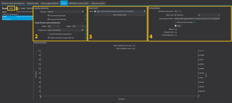 Configure the training settings and click on Train. |