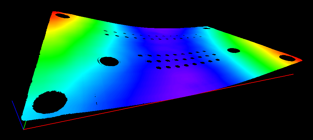 在此应用中,我们将翘曲定义为当PCB回归平面为水平方向时最高和最低表面点之差。换句话说,我们通过PCB点拟合一个平面,并取此回归平面上方最高点与下方最低点之间的垂直距离。