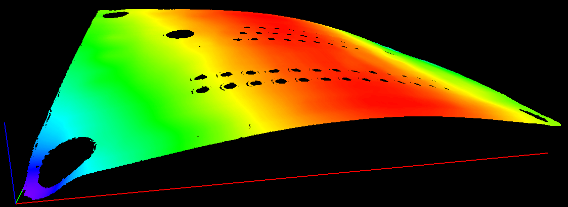 所得深度图(显示翘曲)的三维效果图,及其相应的翘曲测量,示例如下所示: