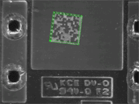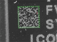 | 1. | The Data Matrix code is automatically detected and decoded. The matrix code reference corner is highlighted with a bold cross mark. It is not necessary to click Read once a new image appears. However, clicking Read will insert the corresponding code into the script window. |
